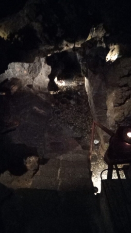 Im B&B angekommen werden wir von unserem „Guide“ Marco begrüßt und in Empfang genommen und wir verabreden uns für später zum Abendessen. Schnell kurz ankommen und unbedingt duschen 🙂 Wir gehen durch enge Straßen und Gassen bis wir in ein kleines Restaurant über eine Treppe hinabsteigen. Es ist sehr familiär und so wundervoll „italienisch“. Immer tiefer gehen wir, bis uns eine weitere Tür geöffnet wird – am Eingang steht auf Italienisch „Aufpreis für Romantik-Dinner in der Grotte“ 2 Euro pro Person – das ist genial. Im hintersten Eck des Restaurants geht es einige Stufen in einen alten Lavatunnel hinab, an dem sich ein kleiner Bach aus Wasser schlengelt. Marco erkärt uns, dass dies ein sehr seltener Ort ist – der Ätna ist voll mit Wasser, aber man muss es nur finden können. Bis heute sind das die saubersten Trinkwasserquellen, die es dort gibt. Das Wasser stammt direkt aus dem Ätna. Es fällt als Niederschlag auf den Berg und versickert, wird durch das poröse Gestein gesäubert und tritt nach hunderten Jahren an irgendeiner Stelle wieder aus dem Berg aus. Das passiert dort, wo das Wasser nicht weiter versickern kann sondern weiterfließen muss – also entweder an dicken und undurchlässigen Gesteinsschichten oder dort, wo der Ätna auf dem Ursediment aufsitzt. Eine Fontäne, an der wir auf unserem Weg ins Restaurant vorbei kamen, wird auch auch solch einem unterirdischen Fluß gespeist. Leider haben wir nur unsere Handys dabei, die Fotos sind entsprechend überwältigend – das konnte aber auch niemand ahnen. Dieser Ort ist faszinierend – das Essen schmeckt hervorragend und der Wein ist gut für die sprachlichen Herausforderungen. Mittlerweile ist unsere kleine Gruppe vollständig und zu fast gleichen Teilen italienisch, schweizerisch, schwedisch und mit uns dann auch noch deutsch. Es wird ein lustiger Abend 🙂