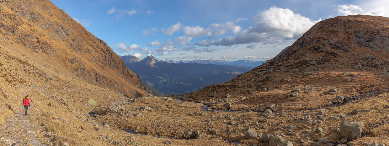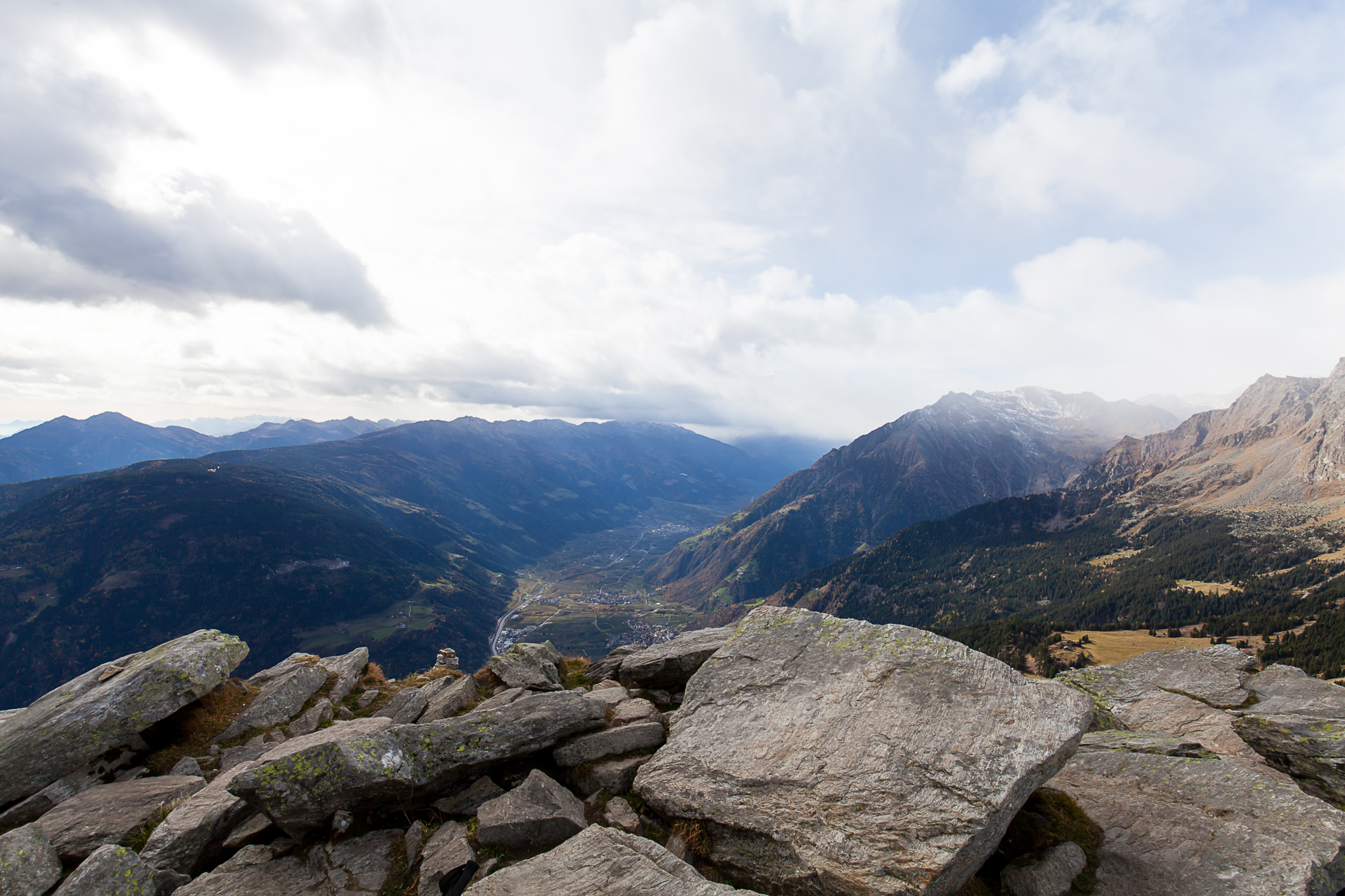 Wir waren im schönen Südtirol wandern. Nach unserer ersten Hüttentour folgte diese nur wenige Wochen später. Die Wanderung zur Bockerhütte war traumhaft. Dort angekommen wurden wir von kulinarischen Leckerbissen überwältigt, die ihresgleichen suchen. Alles ist hausgemacht, vom Kamminwurz bis zum Zirbenlikör, einfach herrlich und ein Fest für die Freunde der handgemachten Erzeugnisse. Am nächsten Tag hatten wir uns die Wanderung zur Mutspitze auf den Plan geschrieben – das wäre dann unser erster Gipfel – ja, unser erster Gipfel. Als wir aufstanden, saß die Herrin des Hauses schon in der Küche und bereitete die Speisen soweit möglich für den Tag vor. Dort gehen die Uhren noch ein wenig anders als bei uns verwöhnten Städtern 😉 Wir machten uns fröhlich auch den Weg und erlebten einen wundervollen Tag in den Bergen. Die Fernsicht war grandios und das Wetter entsprechend gut. Der nahende Winter sandte seine kalten Vorboten schon aus – es war ja bereits Ende Oktober – so war der Weg im Schatten teils gefroren und es zogen um uns herum ein paar Wolken, die den ersten Schnee brachten. Wir blieben von ihnen verschont und konnten einen traumhaften Tag auf einem sehr abwechslungreichen Weg mit lieben Menschen erleben.